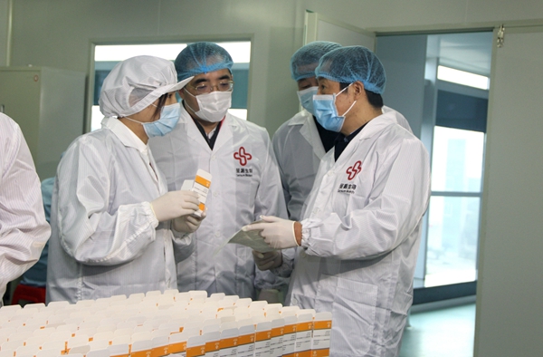 時任湖南省省長、現任湖南省委書記許達哲在抗疫早期調研圣湘生物抗疫物資生產情況