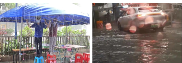 六月初的廣州,持續(xù)高溫之后迎來了持續(xù)性暴雨,地面積水齊至腳踝,去往廣州體育館的路變得更加困難。