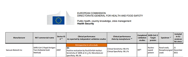 目前市場(chǎng)上用于新冠快速檢測(cè)的產(chǎn)品非常多,在歐盟官網(wǎng)COVID-19新冠抗原快速檢測(cè)試劑的清單中列出了幾百項(xiàng)產(chǎn)品,均已獲得CE認(rèn)證。歐盟HSC在此基礎(chǔ)上針對(duì)新冠抗原快速檢測(cè)試劑提出了更嚴(yán)格的要求,需要廠家提供更多的驗(yàn)證資料證明產(chǎn)品的性能才可進(jìn)入Common list。