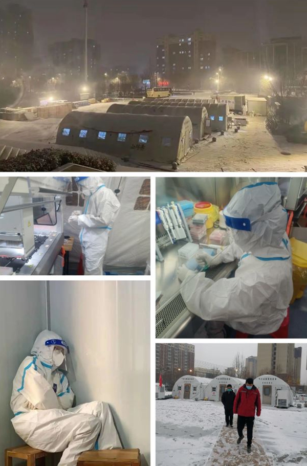 冰凍天氣,艱苦奮戰(zhàn)!過去的18天里,即使大雪紛飛,檢驗人員脫下厚棉襖,穿上又冷又滑的防護(hù)服,靠暖寶寶貼、自加熱鞋墊保暖。零下的水浸泡著冰渣子,有些同事手都開始皴裂……在這樣冰冷惡劣的天氣里,他們依然日夜不停,分工協(xié)作,始終嚴(yán)格按照新冠檢驗標(biāo)準(zhǔn)流程,認(rèn)真對待每一份標(biāo)本,只為保質(zhì)保量完成篩查工作。