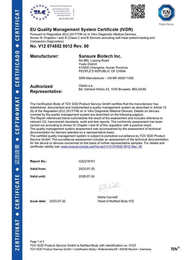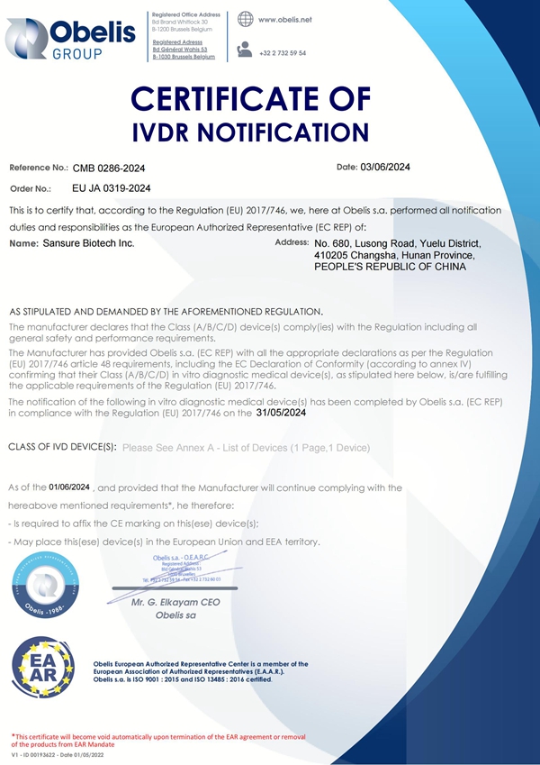近日,圣湘生物自主研發(fā)的結(jié)核分枝桿菌核酸檢測試劑盒(PCR-熒光探針法)獲歐盟CE IVDR認(rèn)證,這是公司呼吸道產(chǎn)品獲得的首個(gè)Class C級(jí)別的準(zhǔn)入證書,為公司結(jié)核產(chǎn)品的全球布局提供了有力支持,也為全球在2030年前消滅結(jié)核的目標(biāo)貢獻(xiàn)了“圣湘力量”。