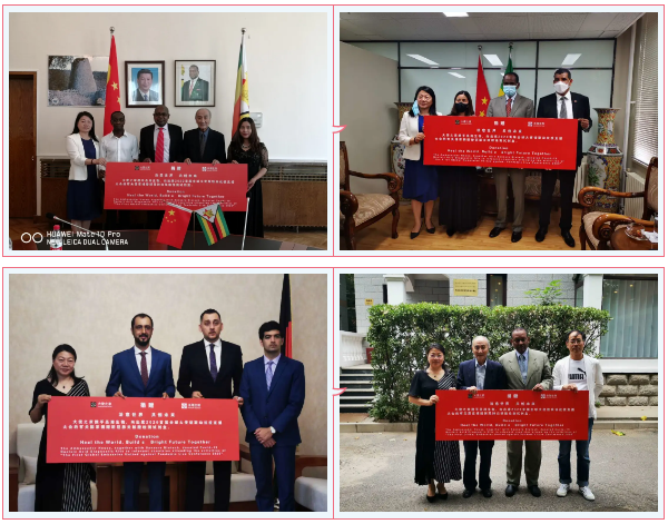 在6月12日舉辦的近20個國家駐華使節參與的首屆全球大使館聯動抗疫直播大會上,圣湘生物宣布捐贈的10萬人份新冠病毒核酸檢測試劑各使館捐贈接收現場。