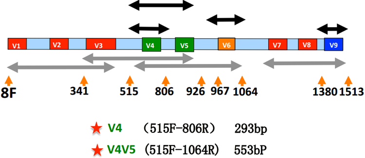 根據研究需求選取不同區域作為多樣性分析擴增引物。