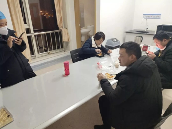 圣湘公司檢測方案順利落地武漢某醫療機構,檢測結果得到醫生認可。深夜,和醫護人員一起享受實驗成功后的喜悅,吃起早已涼了的盒飯。